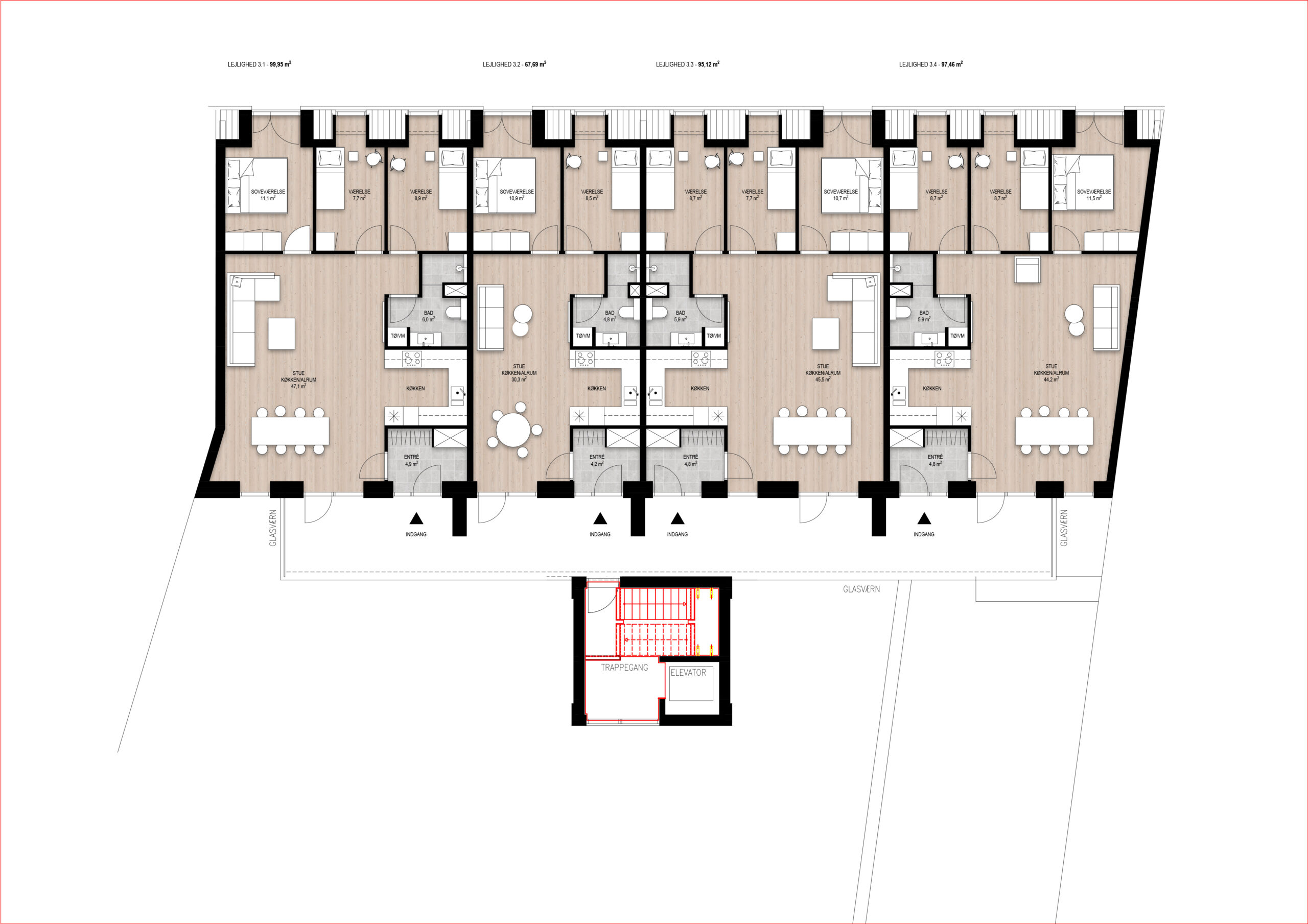 | 3-3 | Ledig | 4 | 3. sal | SNART | 95,6 | 10.554,73 | 500 | 200 | 31.664,19 | 31.664,19 | Plantegning | Kontakt |