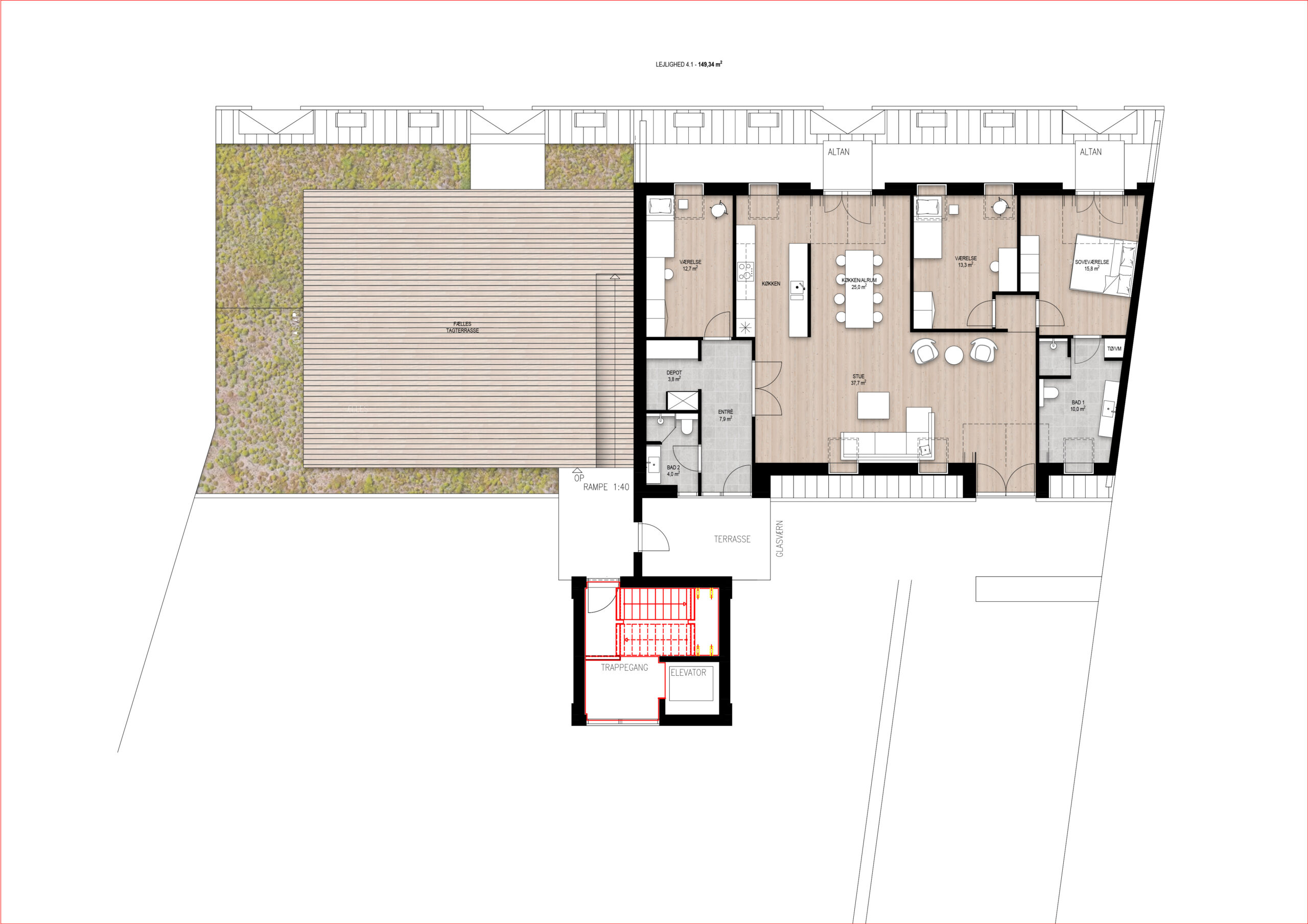 | 1-4 | Ledig | 4 | 1. sal | SNART | 100,8 | 9.740,13 | 500 | 200 | 29.220,39 | 29.220,39 | Plantegning | Kontakt |