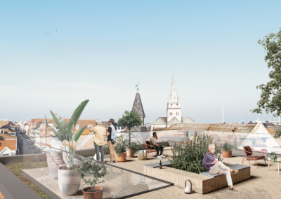 Omdannelsen af Danmarksgade fra Kirkepladsen til Fisketorvet forvandler gågaden til en samlingsgade og et attraktivt shoppingmiljø med centrale samlingspunkter, der løfter bymiljøet og mulighederne for liv, fællesskab og aktivitet i midtbyen året rundt.